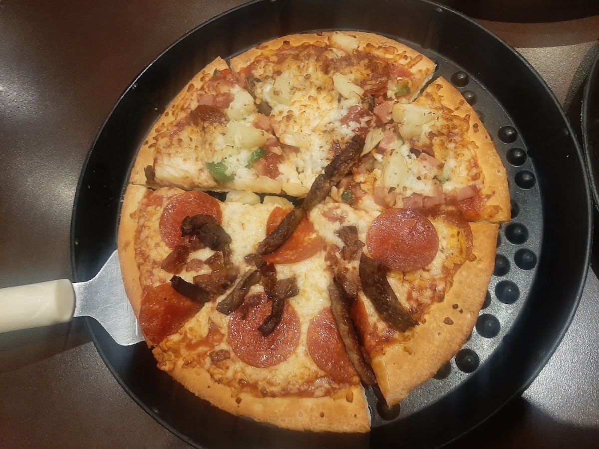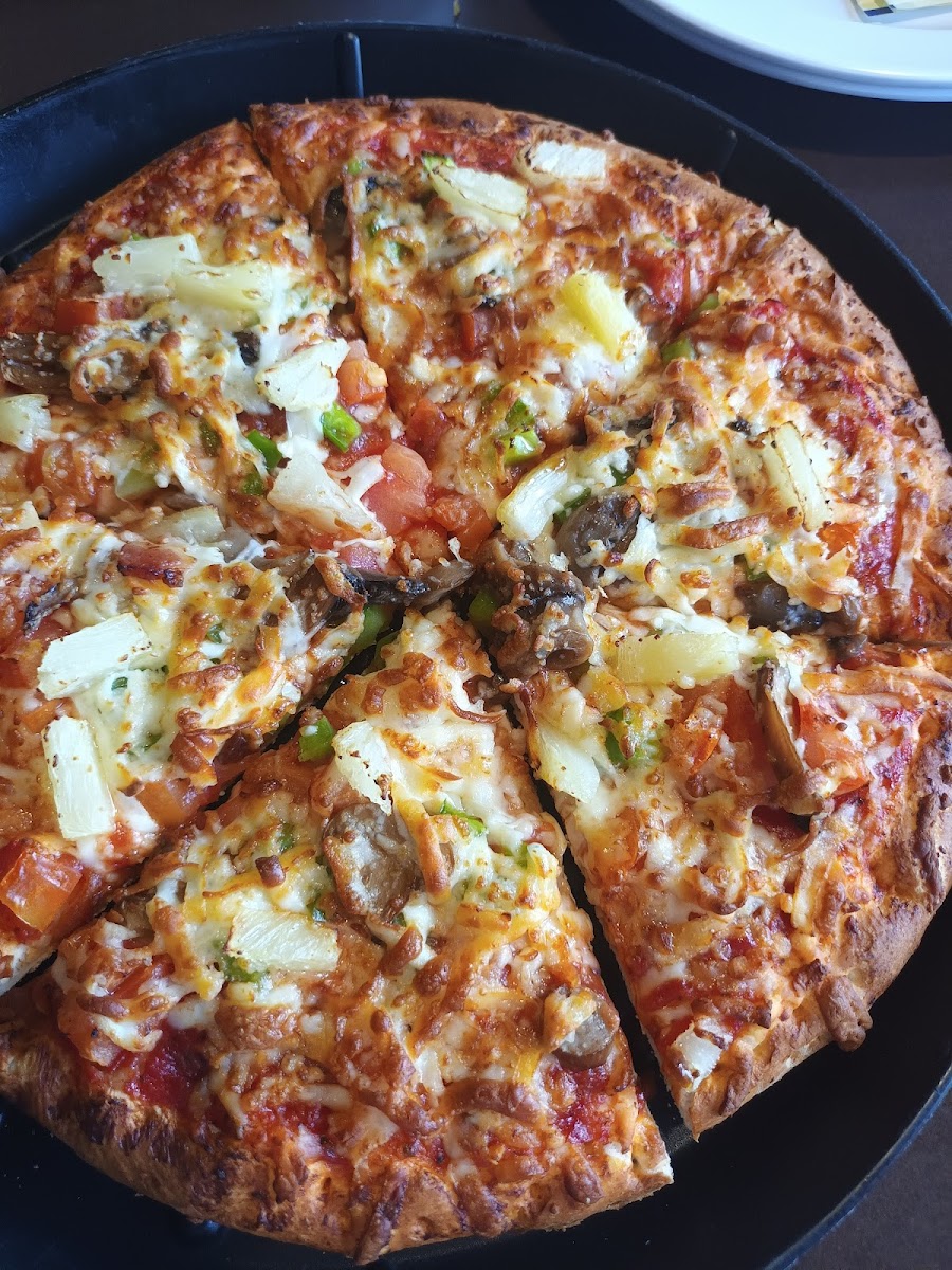 A very nice experience in Chihuahua. I ate the 4 quesos and the Hawaiian pizza. They were awesome, tasty and crunchy. The girl who too our order was super nice and fast. I didn't ger her name but she uses braces. The price was adequate. Totally recommended